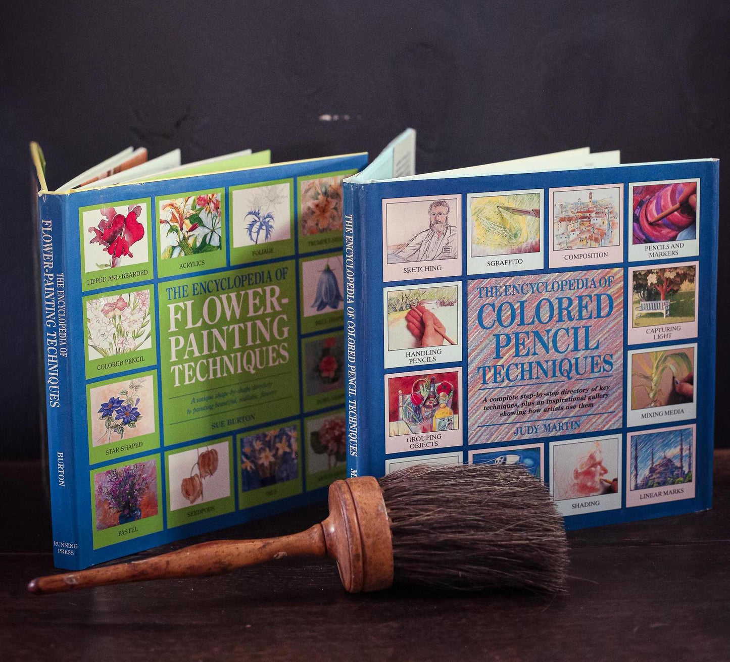 Pair of Vintage Art Encyclopedia Books "Painting Flowers" & "Colored Pencil" Techniques - Vintage Book Ships Media Mail