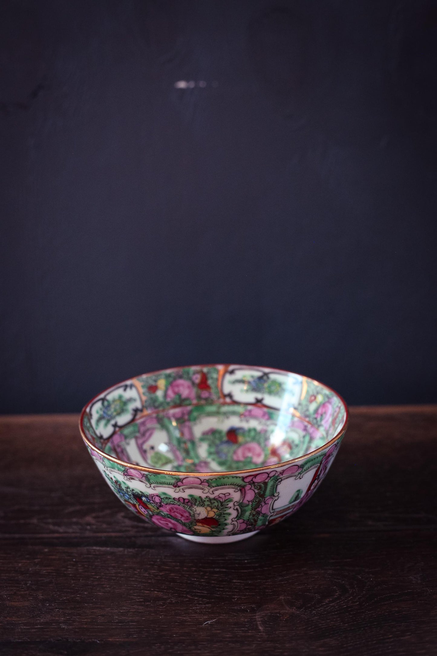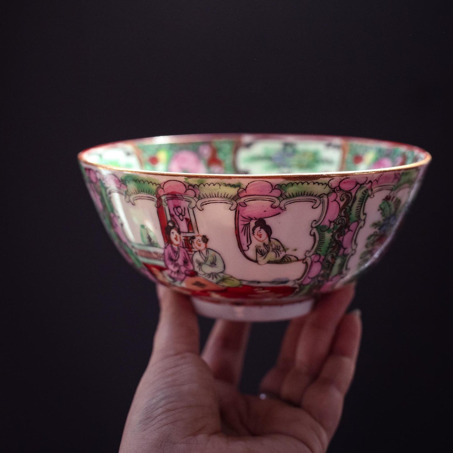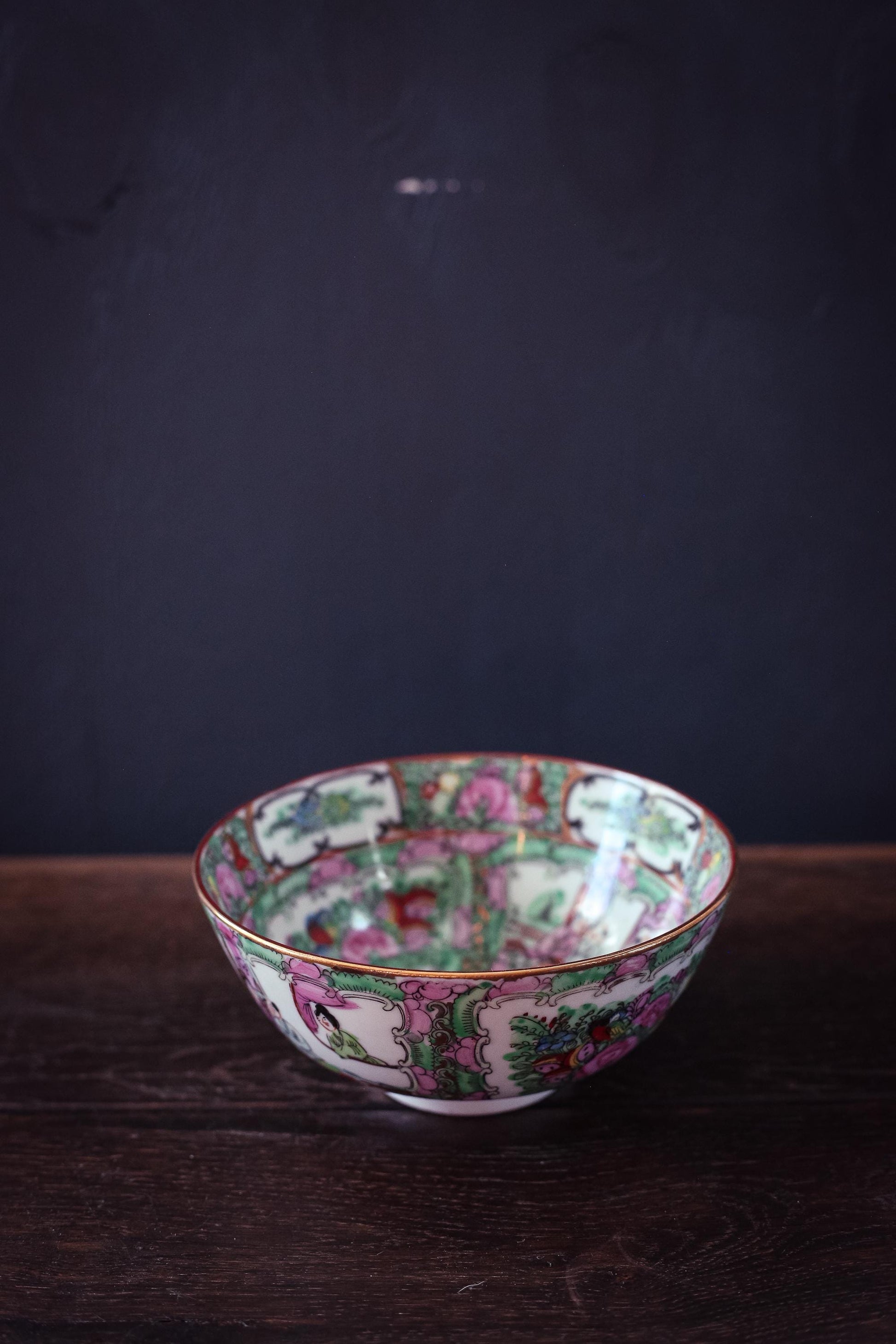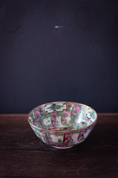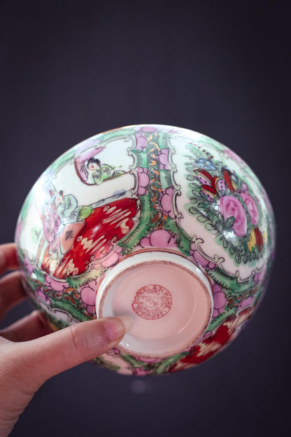 Rose Medallion Bowl - Vintage Rose Medallion Hand Painted Porcelain Bowl