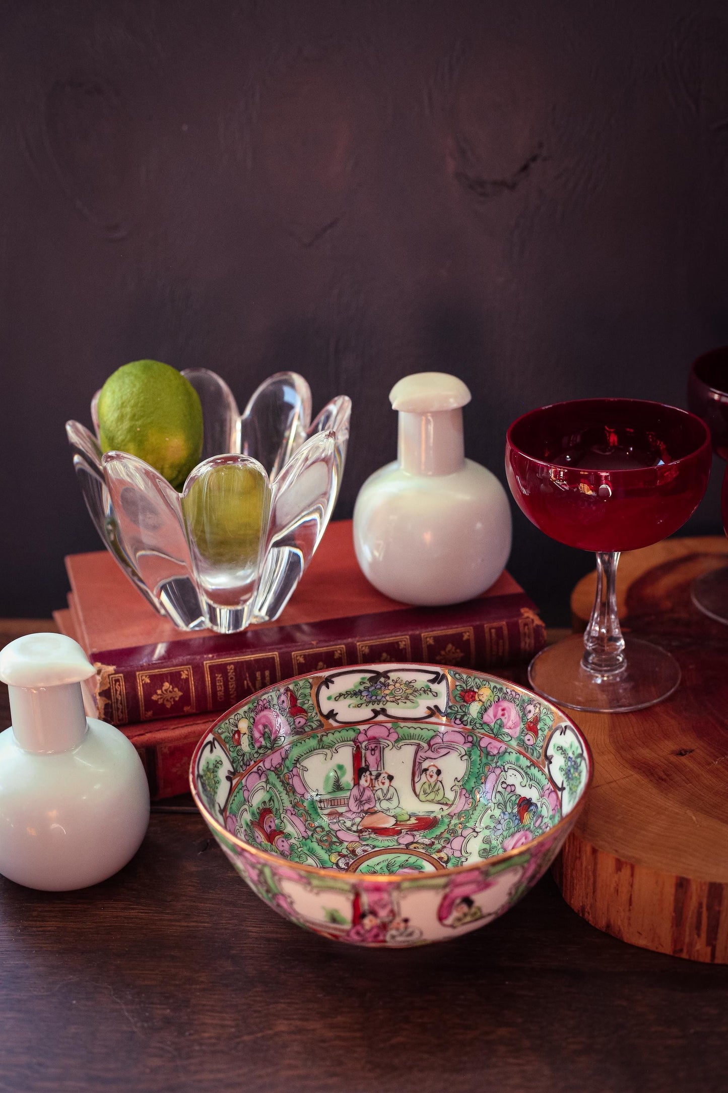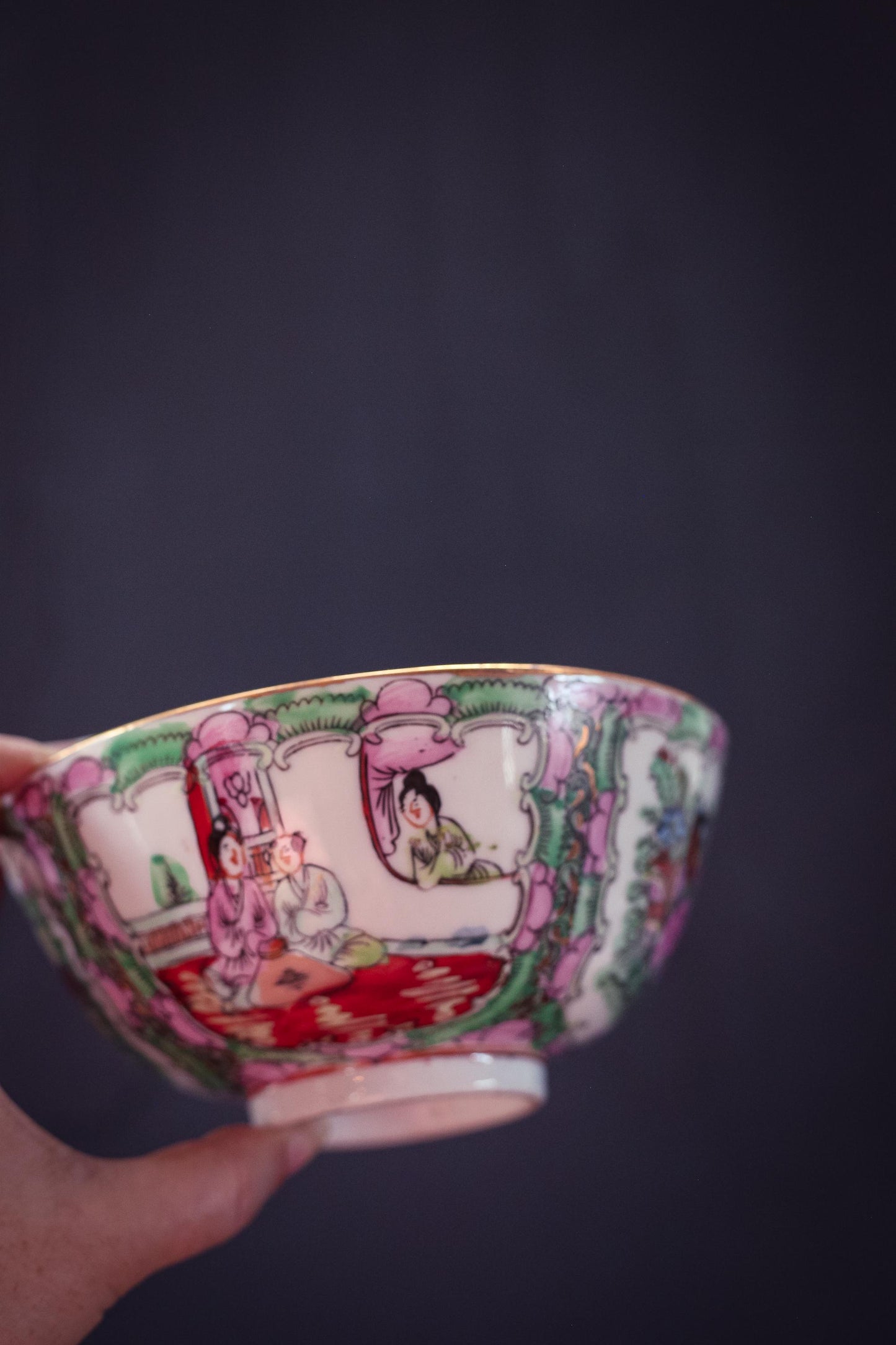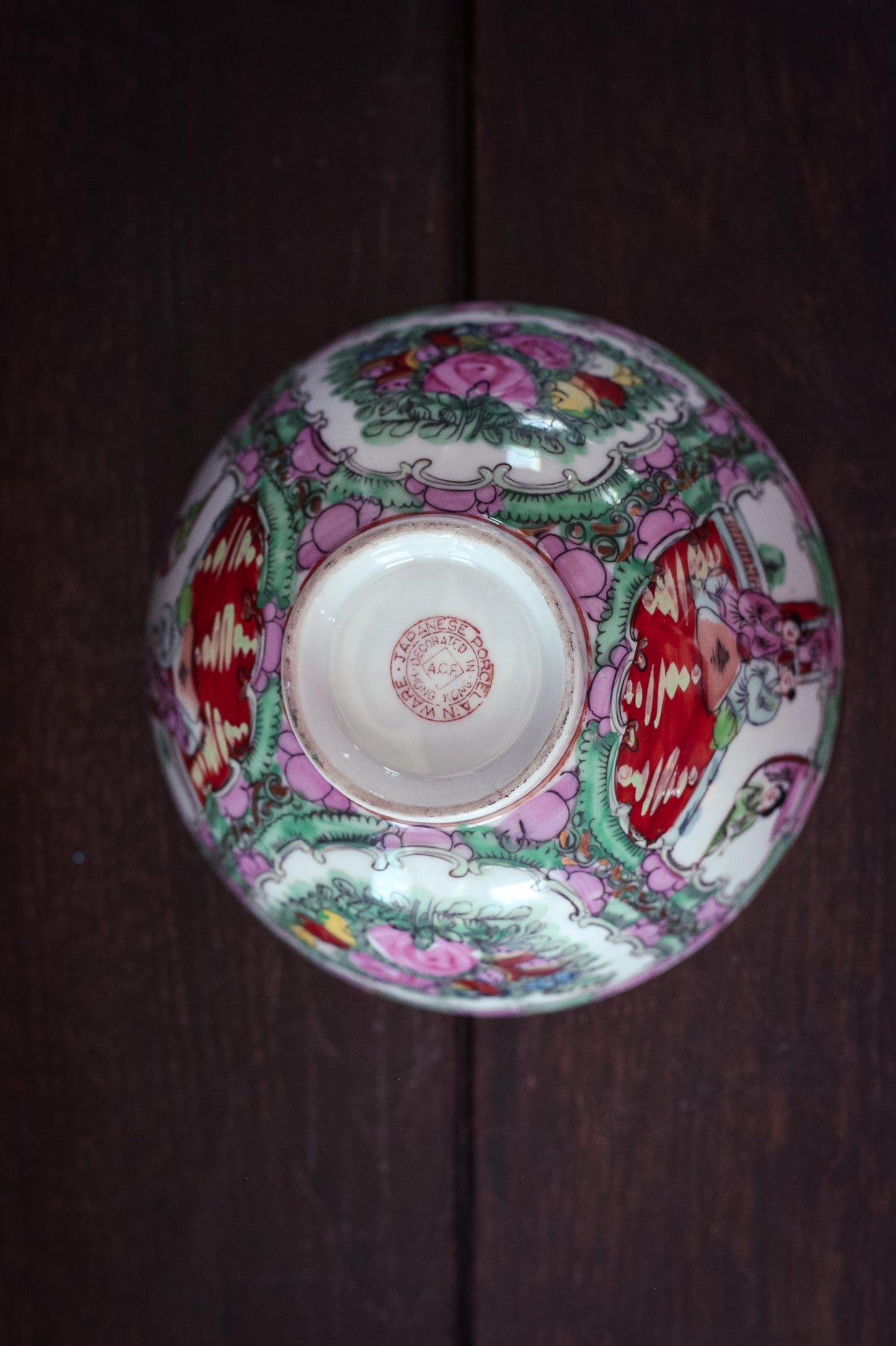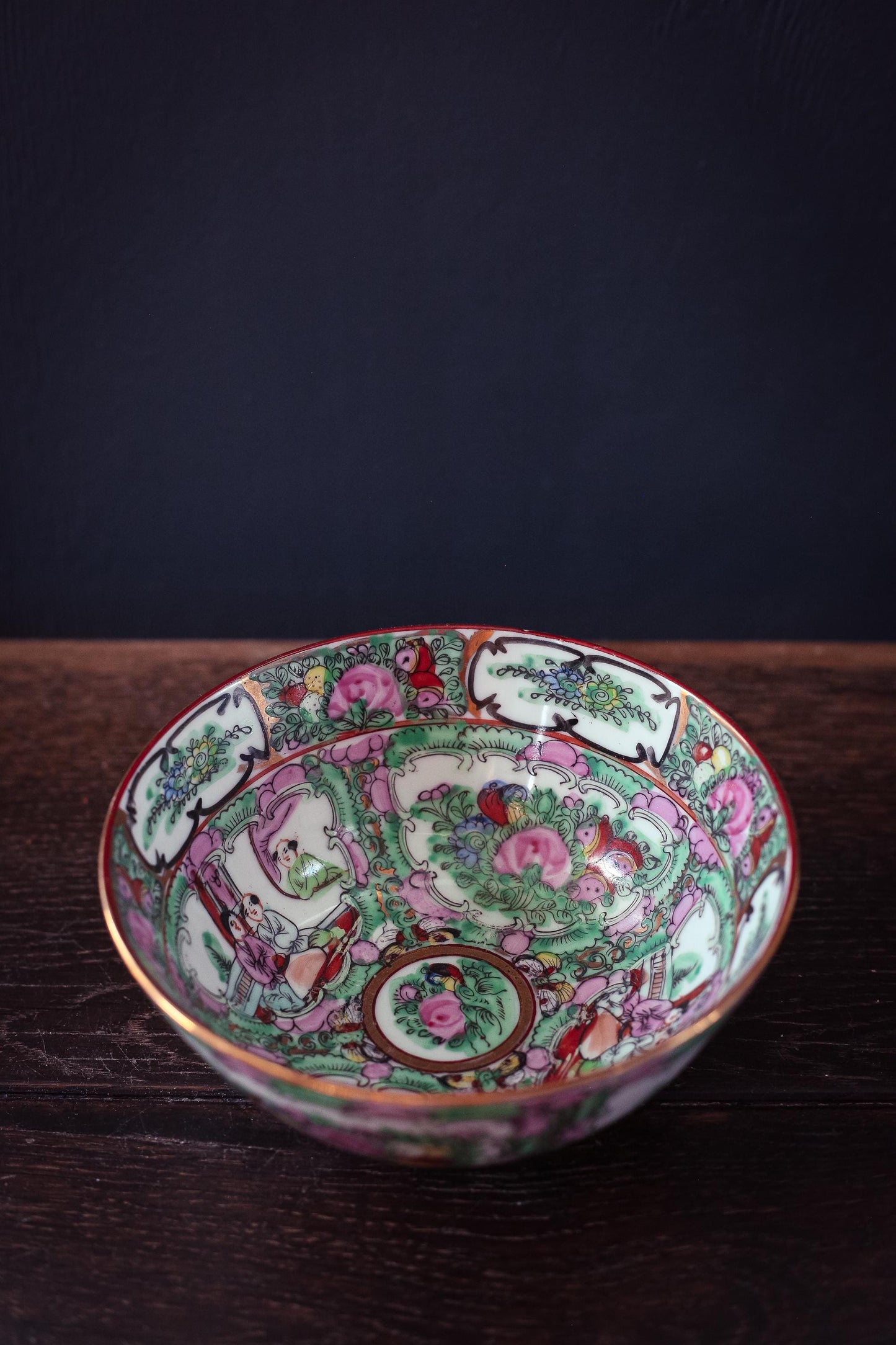 Rose Medallion Bowl - Vintage Rose Medallion Hand Painted Porcelain Bowl