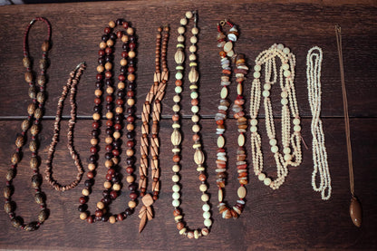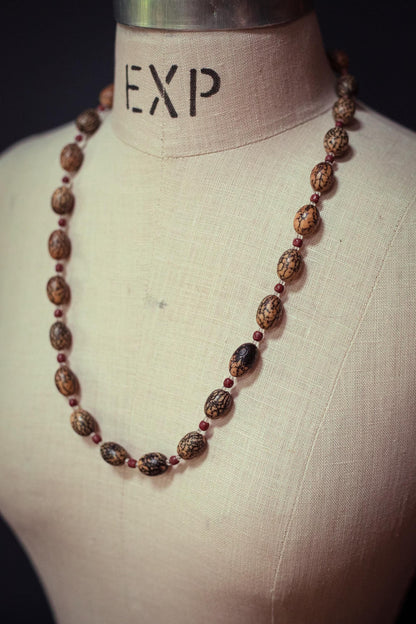 Seed Wood Necklace- Vintage Estate Jewelry Beaded Wood Necklace