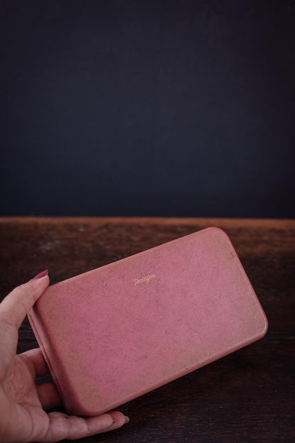 Small Farrington Jewelry Box with Texol Exterior and Velvet Lining - Vintage Pink and Blue Farrington Travel Case