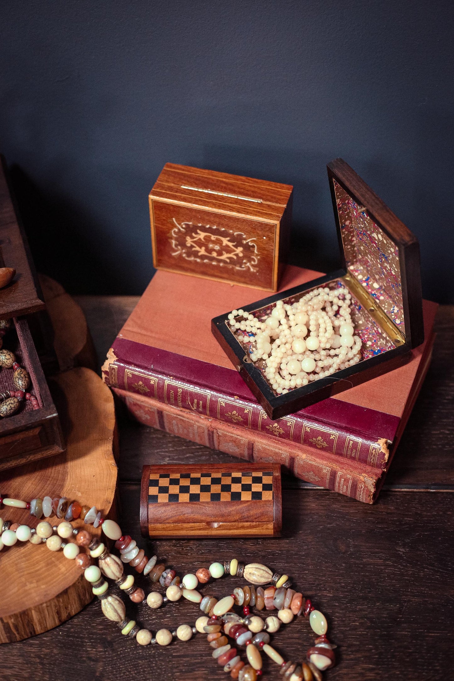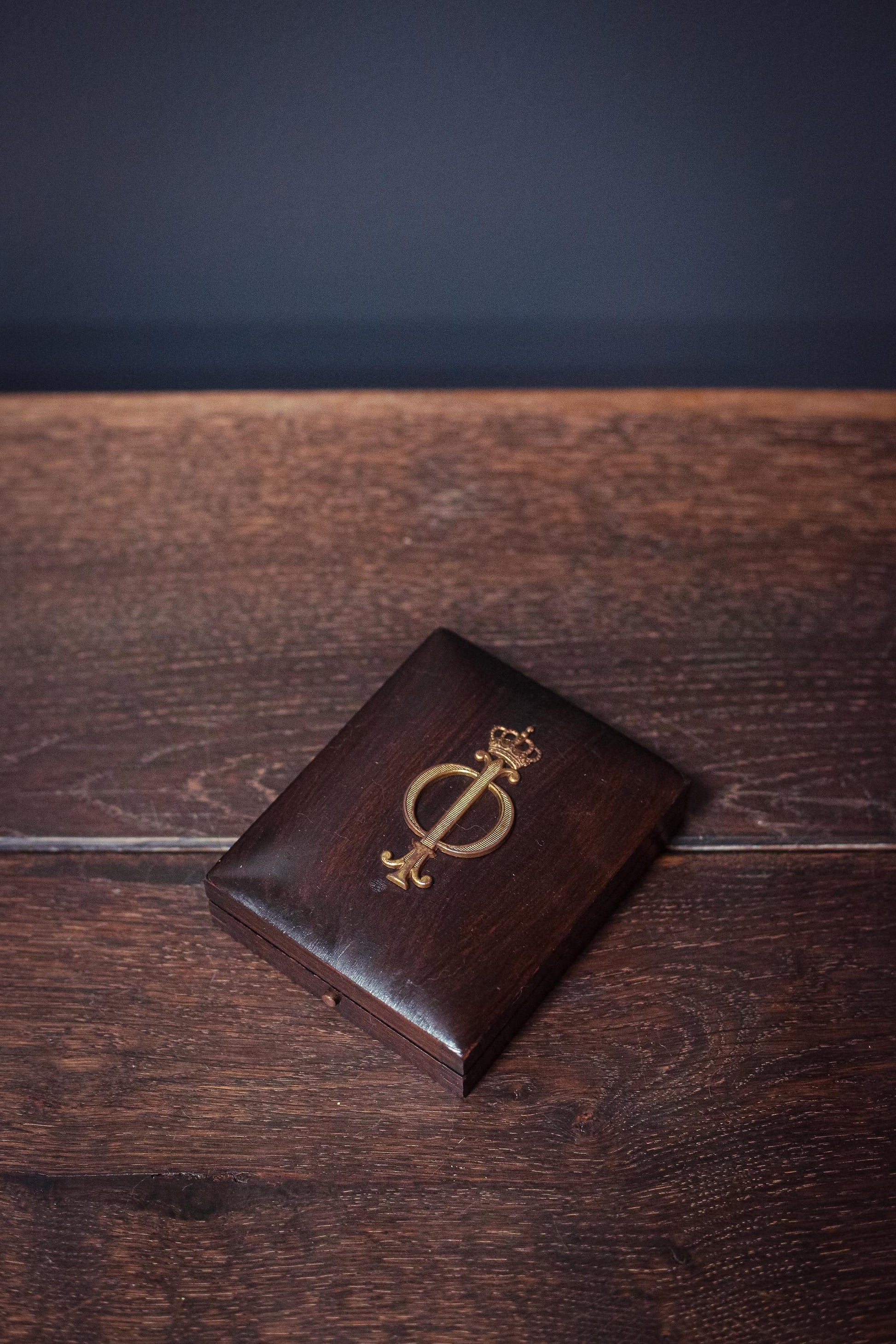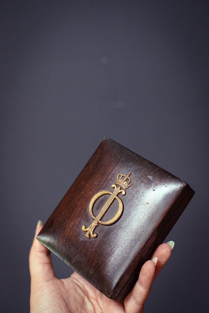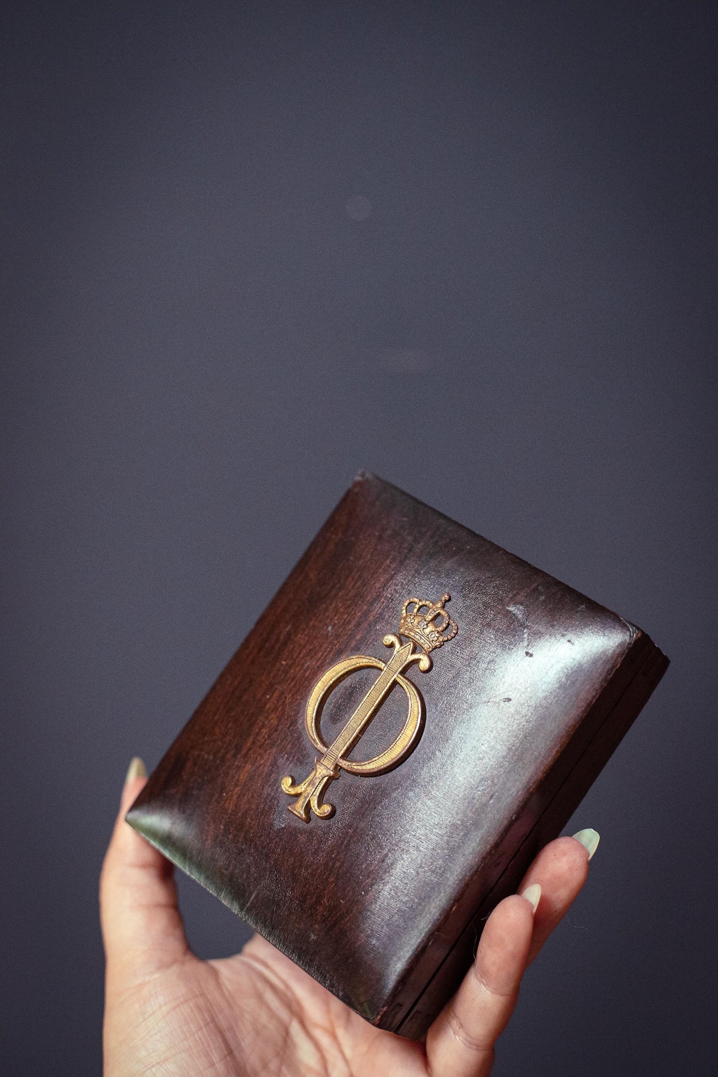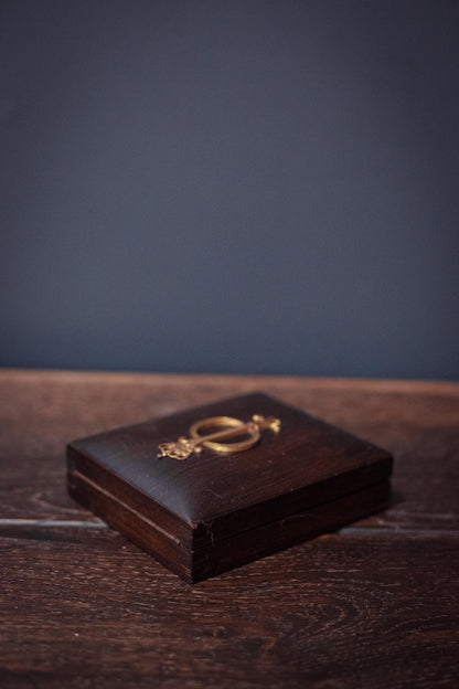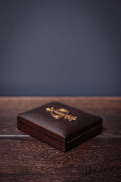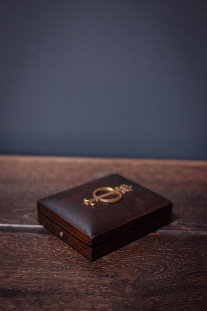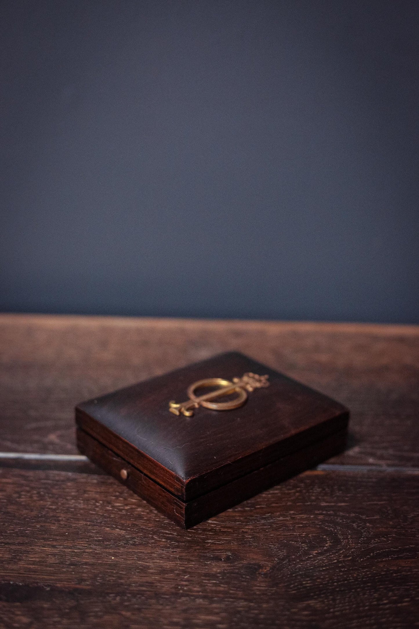 Small Wooden Jewelry Box - Vintage Wood Trinket Box with Brass Medallion
