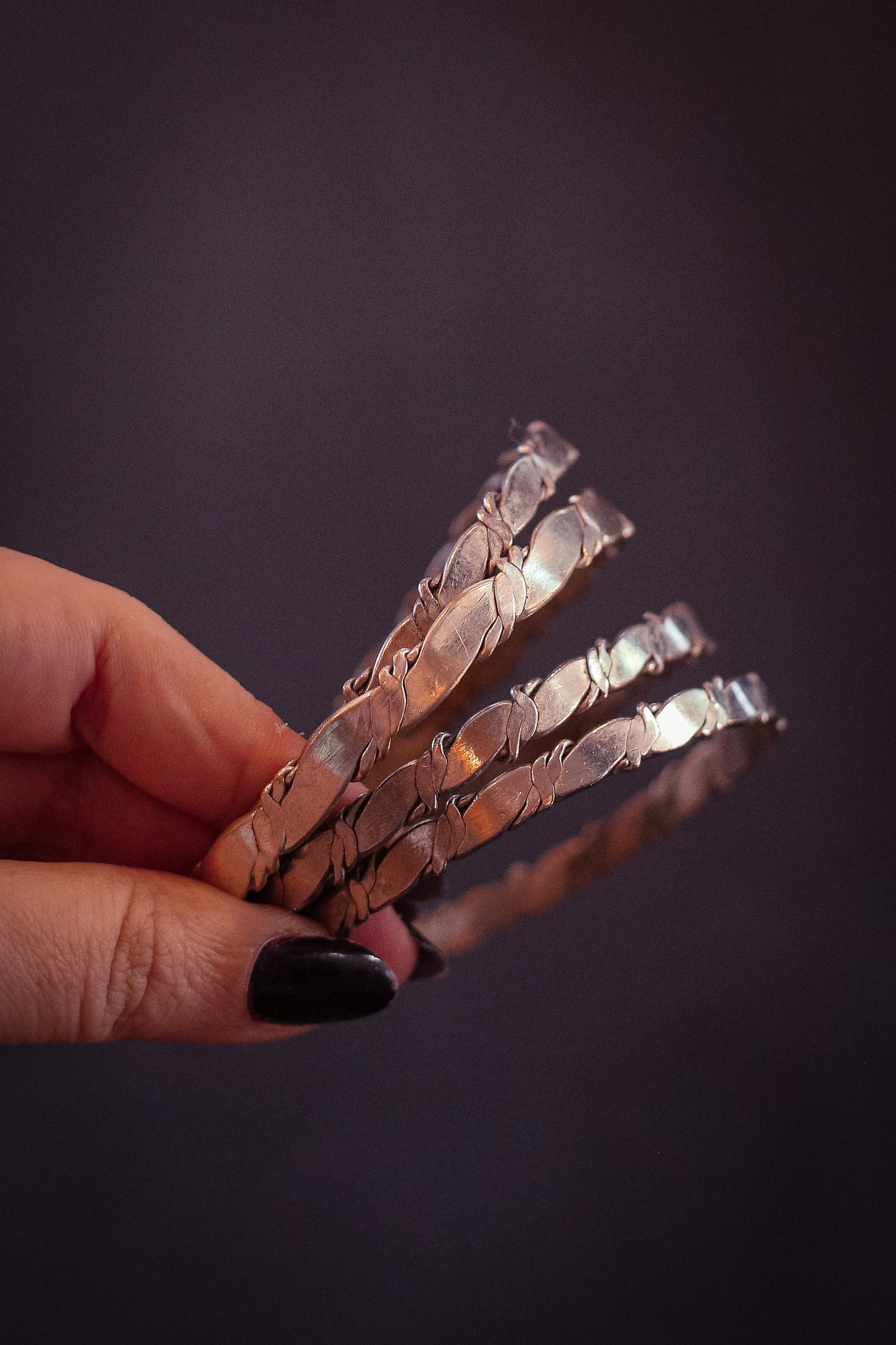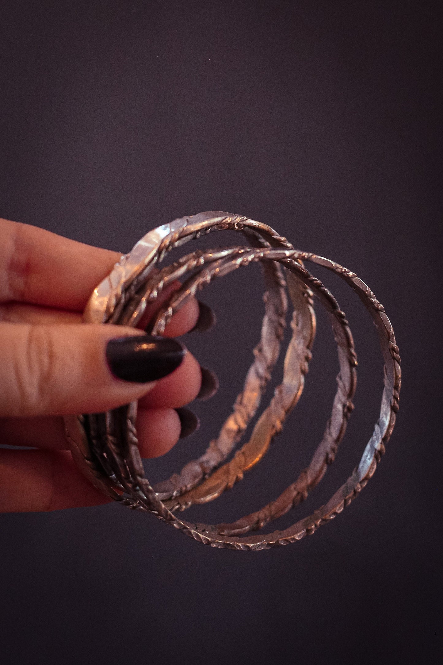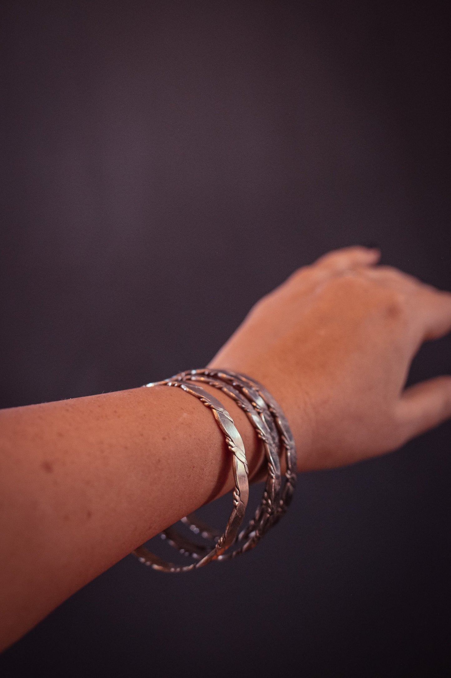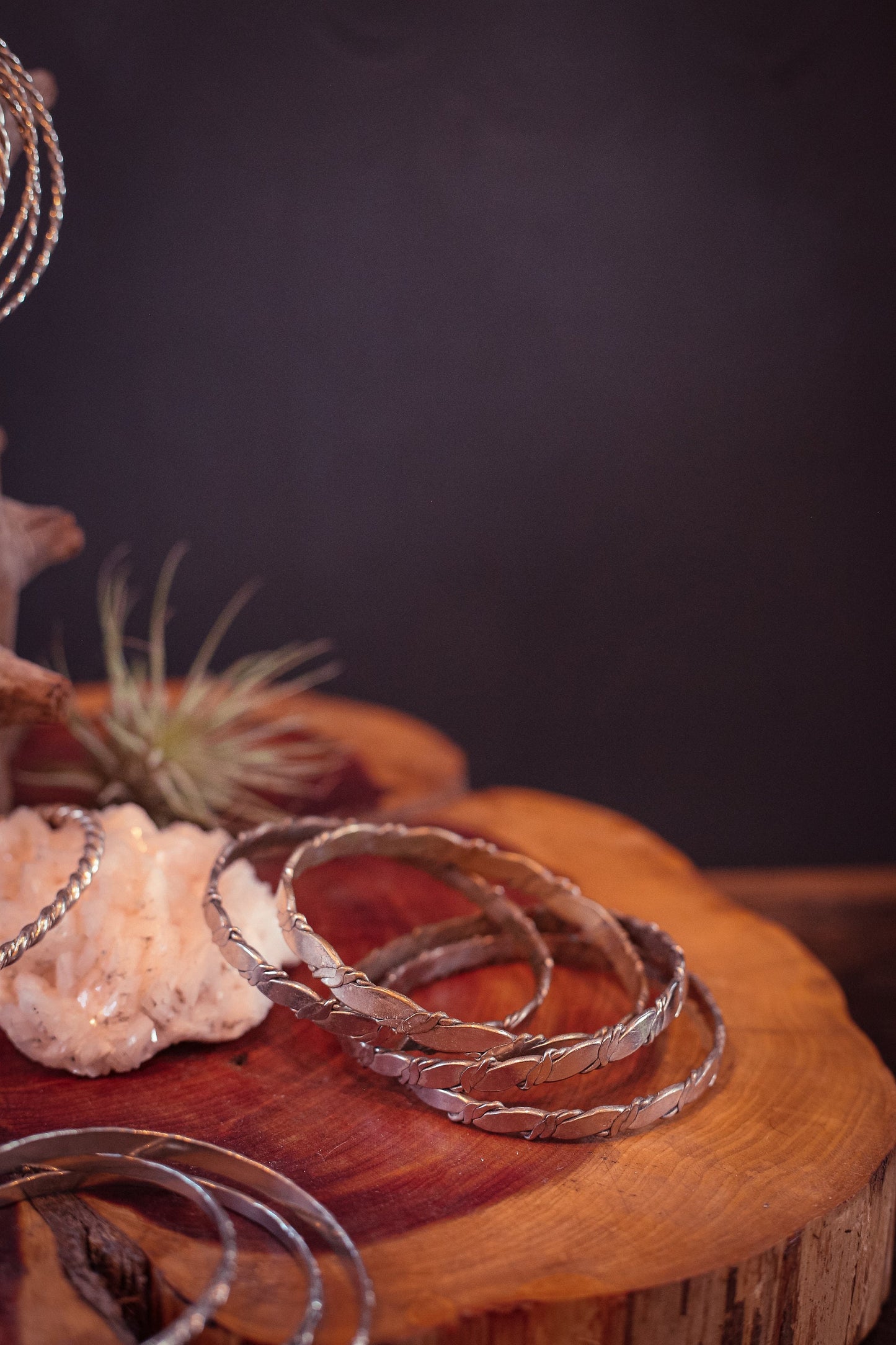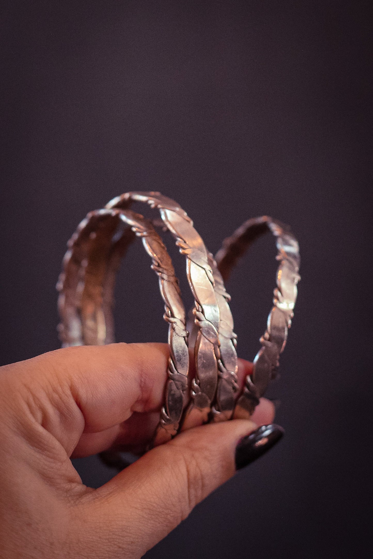 Sterling Silver Hammered Braid Twist Bracelets - Vintage Mexican Handmade Silver Bangles